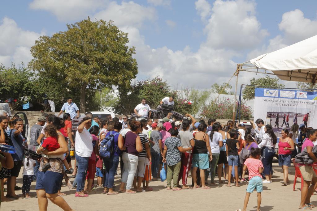 Matamoros, Tam.(11 Octubre 2019)El Gobierno de Tamaulipas, a través de la Secretaría de Salud y el Sistema DIF, implementó acciones de ayuda emergentes a la población migrante establecida en Matamoros que se mantiene en espera de que el gobierno de Estados Unidos les conceda audiencia y resuelva su petición de asilo.