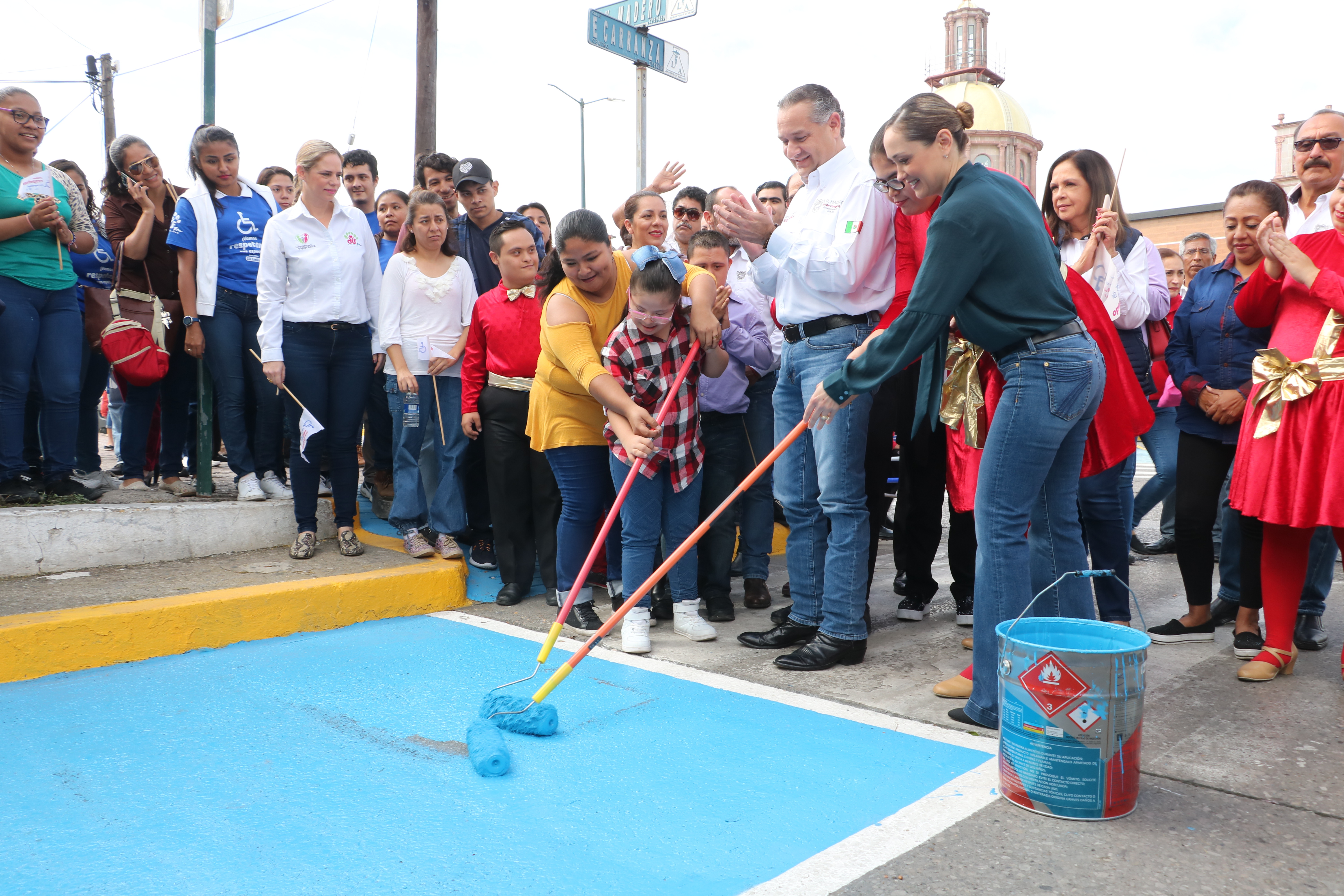 Cd.Madero,Tamps. (3 Diciembre 2019 ) En el marco del Día Internacional de las Personas con Discapacidad, el alcalde Adrián Oseguera Kernion junto a su esposa, la Sra. Ana Cristina Organista de Oseguera, presidenta del Sistema DIF Madero, arrancaron la campaña “Vamos Respetando sus Espacios“, pintando cajones de estacionamiento y rampas para concientizar a la ciudadanía sobre el libre acceso de espacios públicos a las personas en situación de discapacidad.