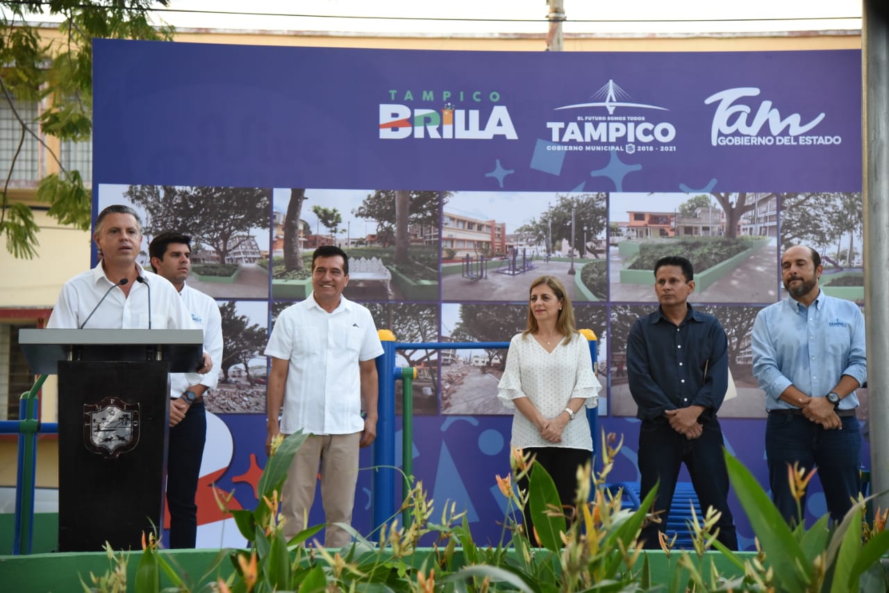 Tampico,Tamps.- (24 Octubre 2019 ) Con el propósito de brindar espacios recreativos funcionales y seguros a las familias tampiqueñas, el Presidente Municipal Chucho Nader inauguró la tarde de este jueves, la remodelación integral de la plaza pública ubicada en la colonia Lauro Aguirre.