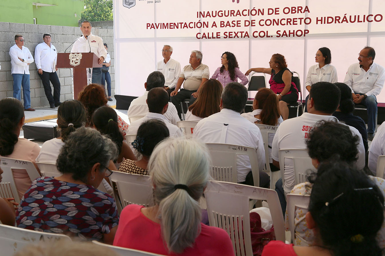 En el seguimiento de una intensa agenda de obra pública, reforzada en el mes de junio, el Presidente Municipal inauguró la pavimentación a base de concreto hidráulico de la Calle Sexta, beneficiando a más de 100 maderenses de la colonia Sahop.