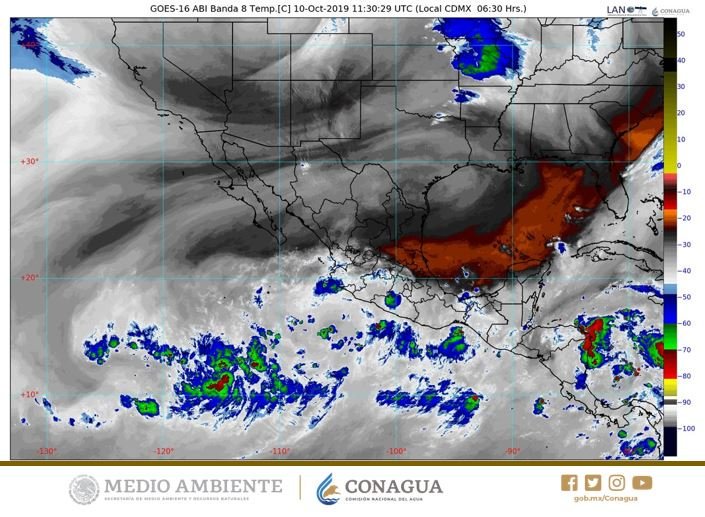 Explicó que se espera viento moderado de 35 a 50 kilómetros por hora; con posibilidad de lluvia desde moderadas a fuertes al recorrer el frente frío en la entidad.