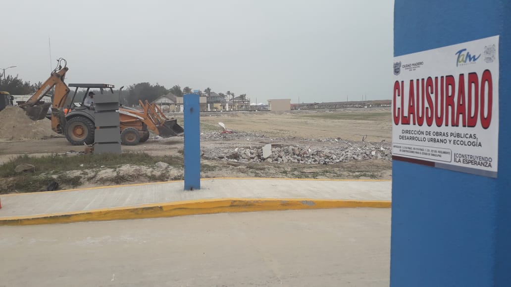 Cd.Madero,Tamps. (7 Abril 2019)De acuerdo a la Ley de Asentamientos Humanos, Ordenamiento Territorial y Desarrollo Urbano para el Estado de Tamaulipas, el Ayuntamiento de Ciudad Madero, a través de la Dirección de Obras públicas, procedió este domingo a la clausura de 2 estacionamientos ubicados en el bulevar costero por falta de uso de suelo para operar.