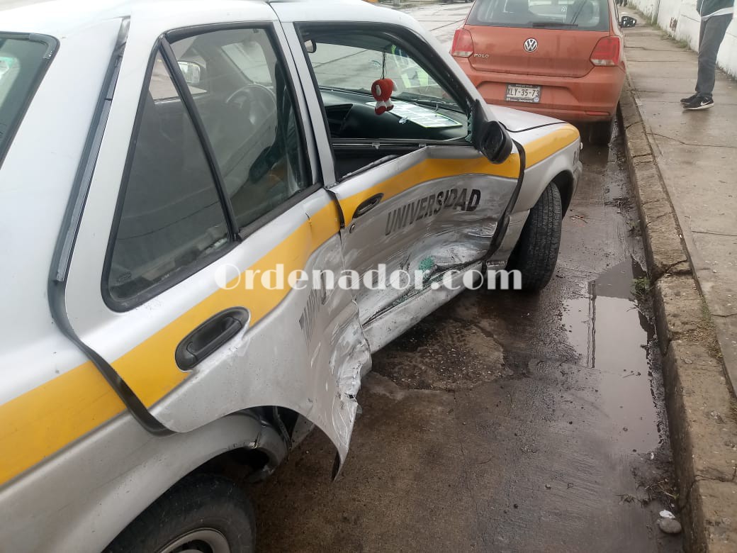 La maniobra hizo que fuera impactado por un carro Chevrolet Spark color azul habilitado como taxi libre, golpe que proyectó a dicha unidad hacia un tercer vehículo, un Volkswagen azul que se mantenía en posición estática en la calle Universidad de México esperando su conductor incorporarse al bulevar.