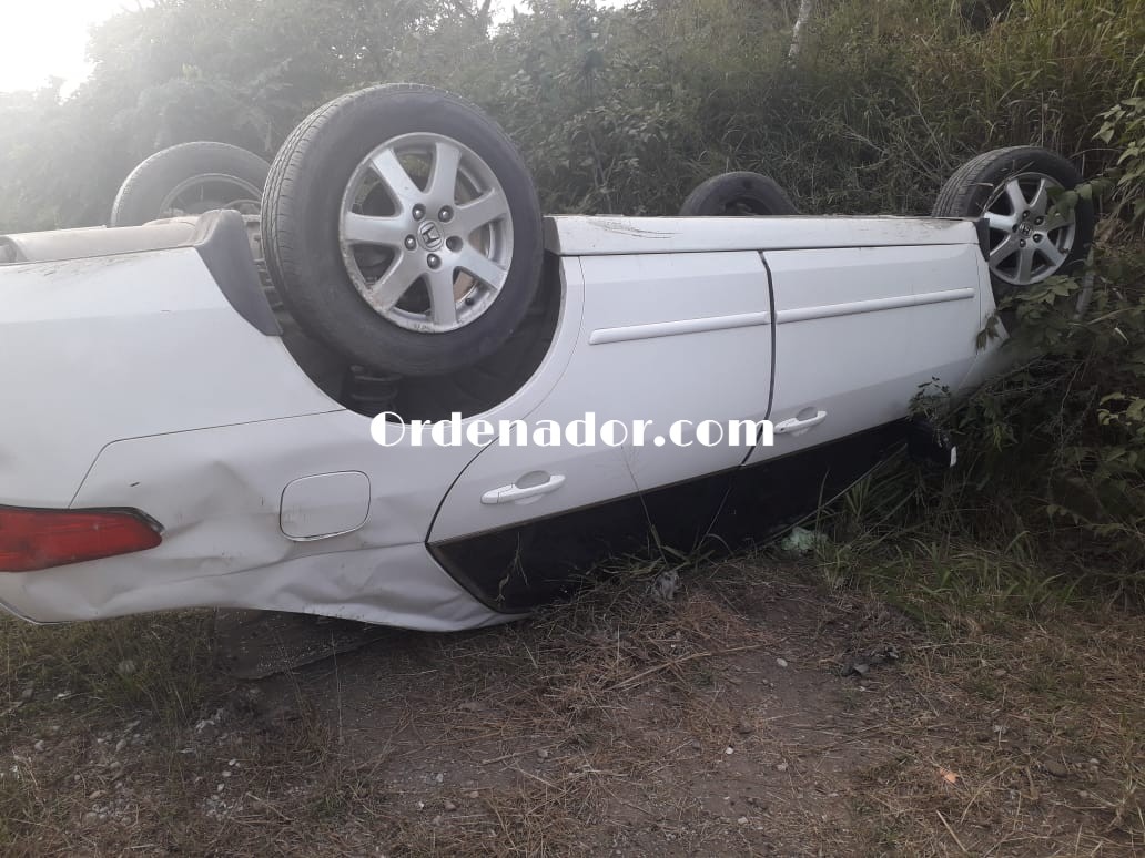Se trata de un vehículo de la marca Honda Accord en color blanco, del cual, al quedar volteado, las dos jovencitas de unos 25 años de edad lograron salir.