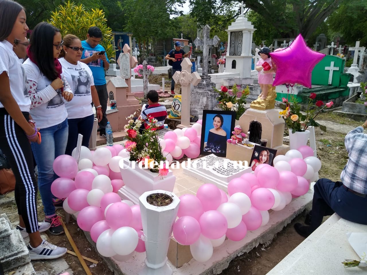 Sus seres queridos entre quienes se encontraba su esposo, adornaron con flores, globos y una muñeca la tumba en la que yacen los restos de ambas y también llevaron una bocina en la que se escuchaba música infantil, al celebrarse hoy el día de "Todos Santos",fue la madre de la joven mujer fallecida, Alma García quien expresó que a un año de los hechos aún no se dicta sentencia en contra del matrimonio presuntamente responsable por lo que exigen justicia.