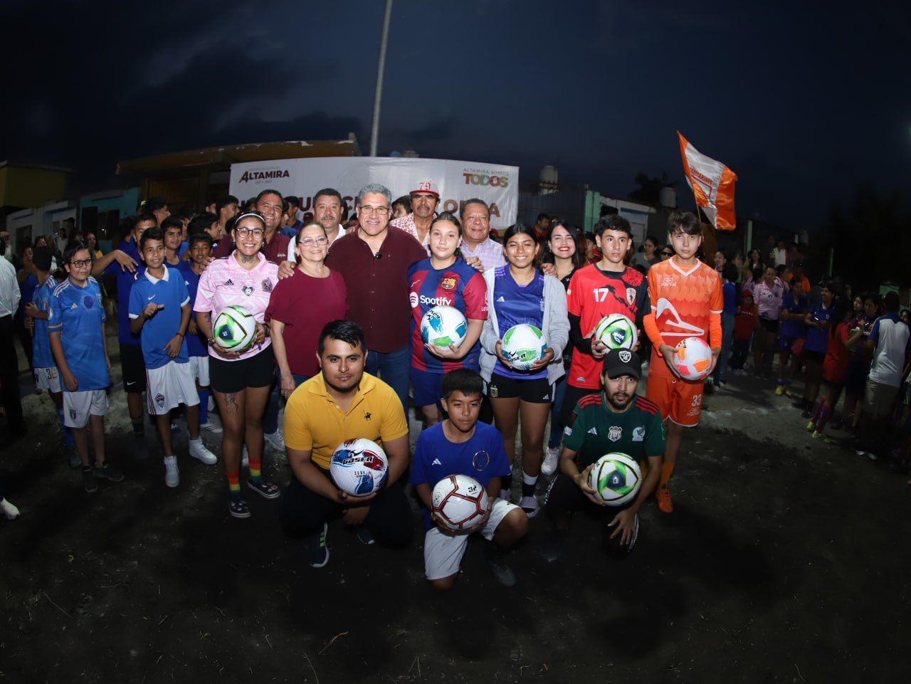 “Vamos a seguir construyendo juntos un mejor Altamira”, concluyó el presidente entregando balones a los equipos de futbol que se dieron cita a este evento.