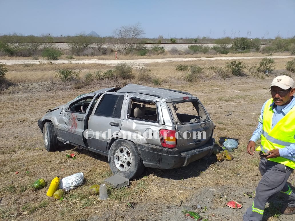 González, Tam.-(23 Abril 2019) Un hombre resultó con una fractura en una de sus extremidades superiores, luego de volcar a bordo de su camioneta la cual la llevaba cargada con cocos y sandías con destino a la ciudad fronteriza de Reynosa.