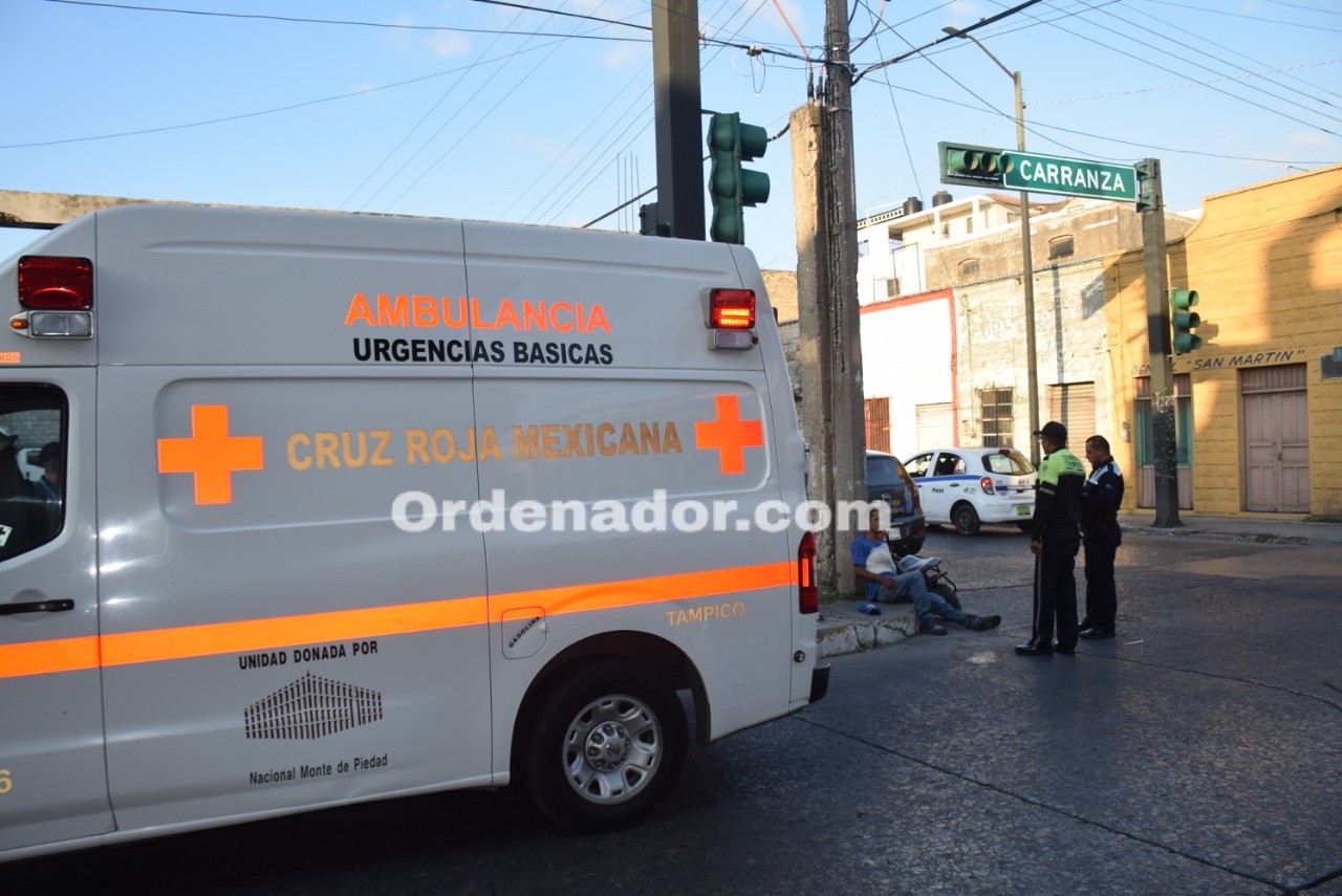 Tampico,Tamps.- (4 Septiembre 2019)Cuando se dirigía apurado a cobrar un dinero al centro de Tampico, un motociclista fue embestido por un automóvil compacto, percance que le dejó dolorosas lesiones, mientras que el conductor de la primera unidad trató de huir pero fue detenido a unos metros del sitio.
