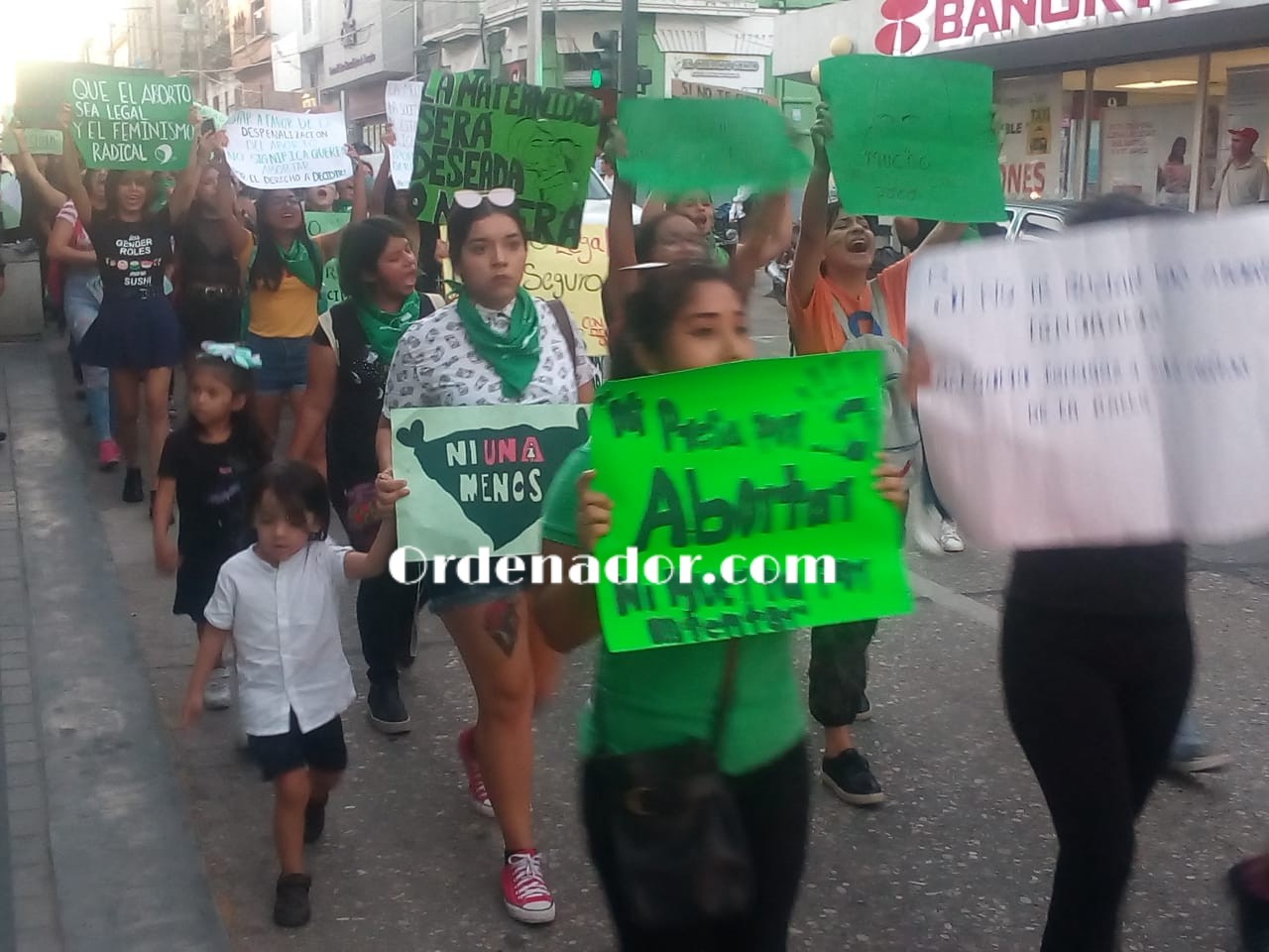 Tampico, Tamps.- (4 Octubre 2019 ) Entre consignas como:"Madre por decisión no por obligación", "señora no sea indiferente se mata a las mujeres en la cara de la gente" y apoyadas con silbatos, integrantes del movimiento "MareaVerdeTampicoMX" representado por un grupo aproximado de cincuenta mujeres, hombres en su mayoría jóvenes acompañados de menores de edad, protestó hoy con una marcha a favor de la legalización del aborto.