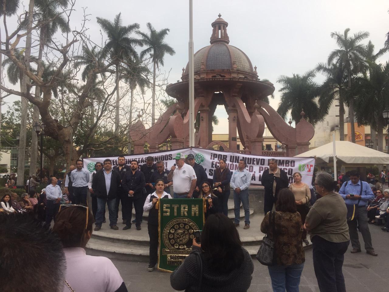 Tampico,Tamps. (31 Enero 2019)33 mil trabajadores en activo y 14 mil jubilados del Sindicato de Telefonistas en el país de los que 700 integrantes pertenecen a la sección 18 en el sur de Tamaulipas marcharon esta tarde desde las oficinas del gremio ubicadas en la calle Canseco hasta la plaza de Armas de Tampico, para demandar al gobierno federal de Andrea Manuel López Obrador que derogue la reforma a la Ley de Telecomunicaciones.