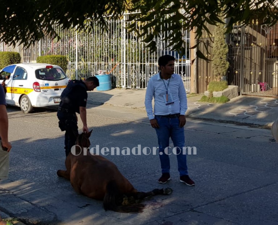 El animalito quedó malherido sobre la vialidad muy cerca del campo de fútbol Joaquín del Olmo, a decir de los testigos el equino fue embestido por conductor de microbús de la ruta Revolución Verde.