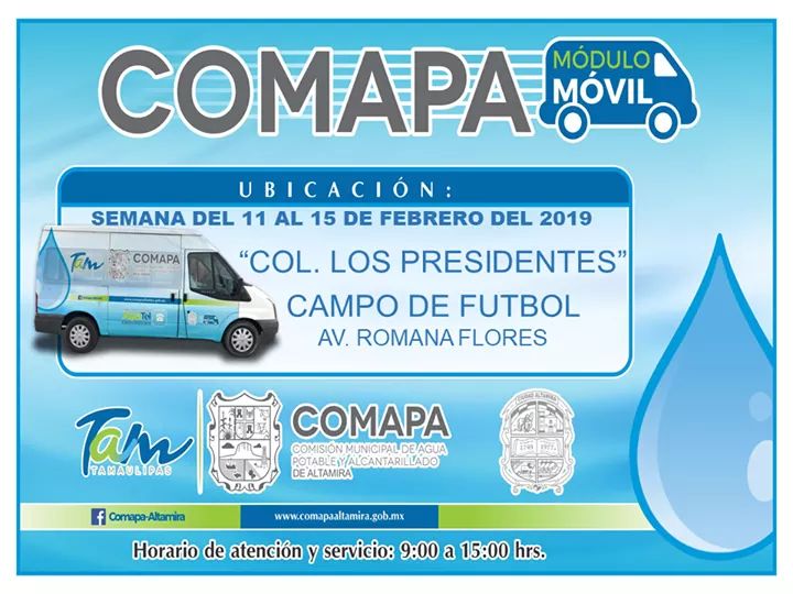 COMAPA Altamira Movíl en Col. Los Presidentes del 11 al 15 de Febrero