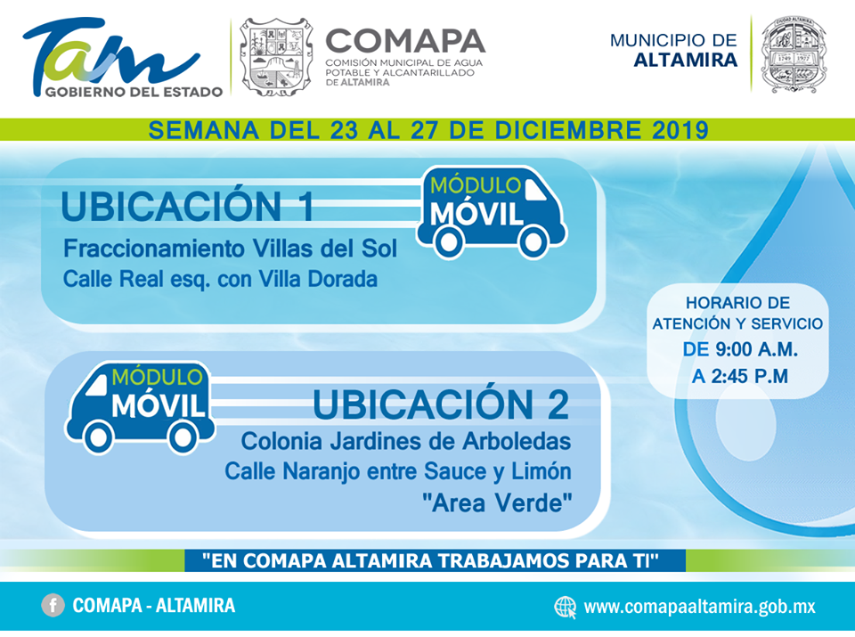 Módulo COMAPA Móvil Altamira del 23 al 27 de diciembre