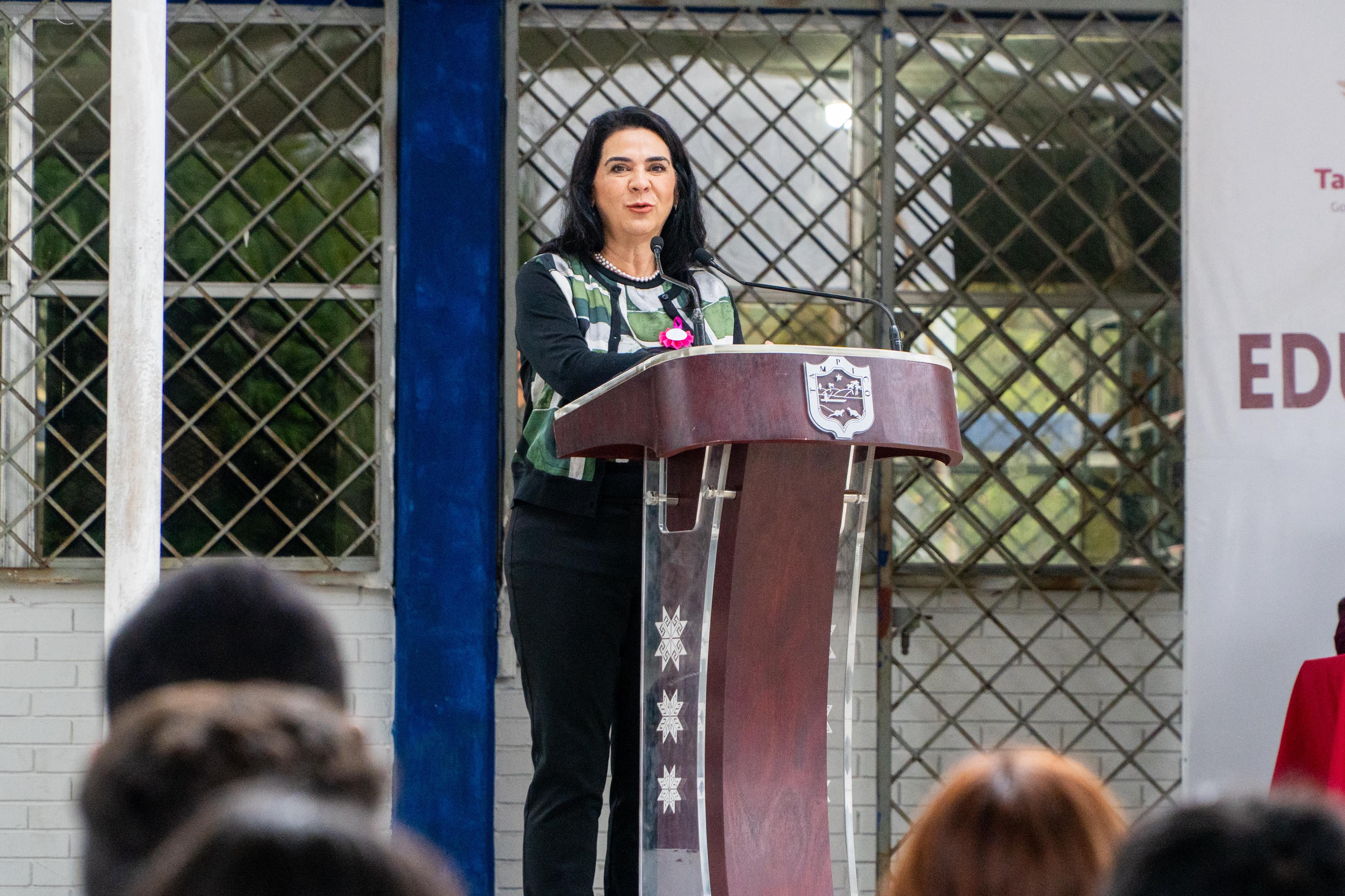 La directora del plantel, María Guadalupe García Garza, agradeció la presencia de las autoridades y reconoció los esfuerzos municipales en favor de la comunidad escolar.