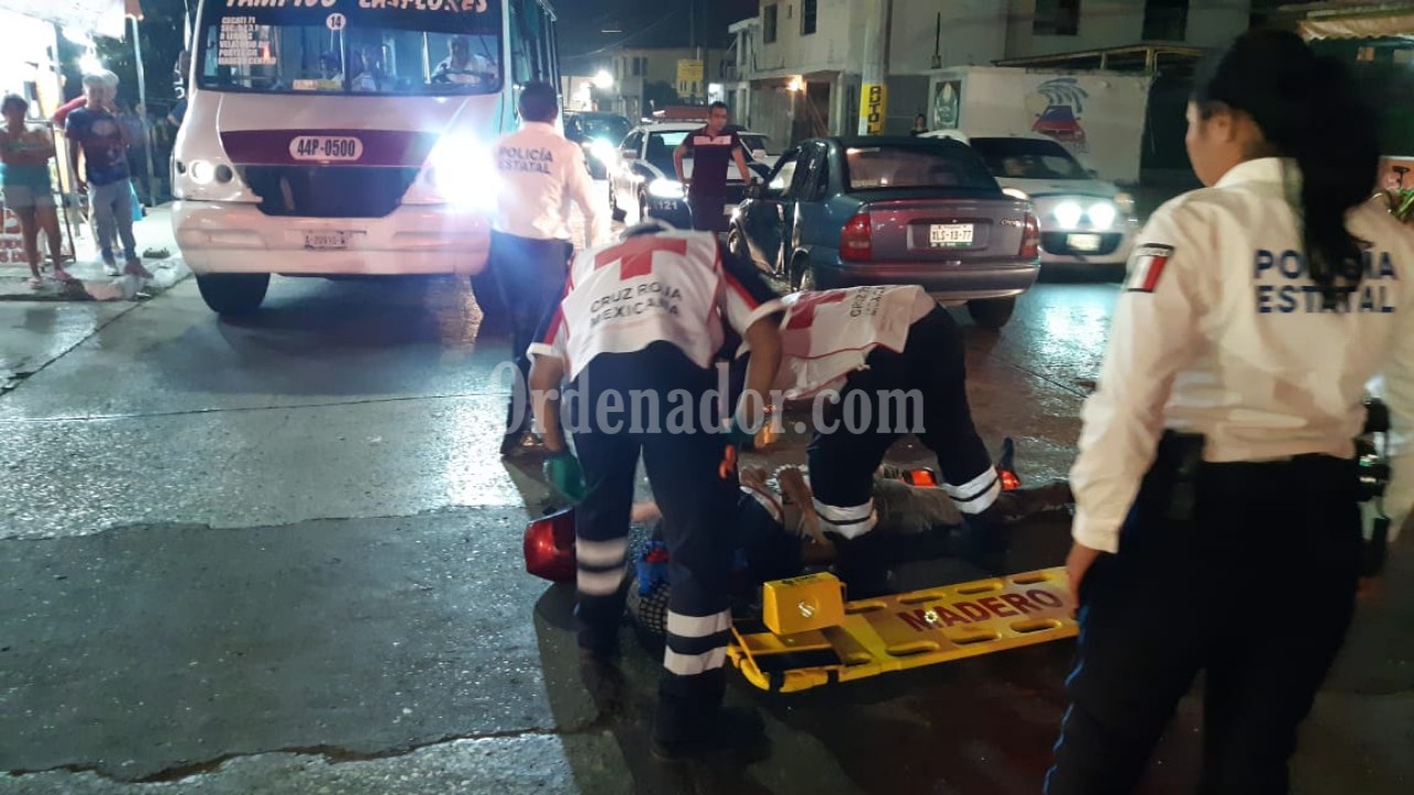 La frágil unidad se impactó en el costado del automóvil saliendo despedido por el aire su tripulante que resultó con severas lesiones, requiriendo el apodo de socorristas de la Cruz Roja para hacer su traslado a un hospital, mientras la conductora fue detenida por personal de vialidad.