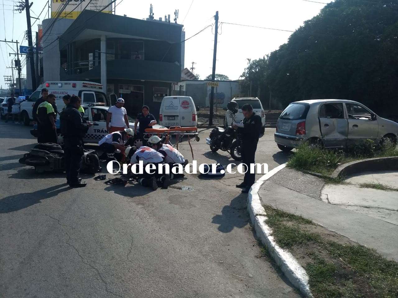 El percance se produjo cuando el tripulante de un automóvil Dodge Atos color gris circulaba sobre la Avenida Hidalgo en dirección norte a sur por el carril central, y de pronto su conductor quiso virar a su derecha.