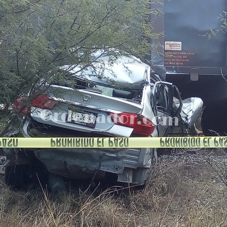 Las víctimas viajaban en un automóvil Honda Civic color gris con placas de circulación del estado de Coahuila, unidad que terminó convertida en fierros retorcidos.