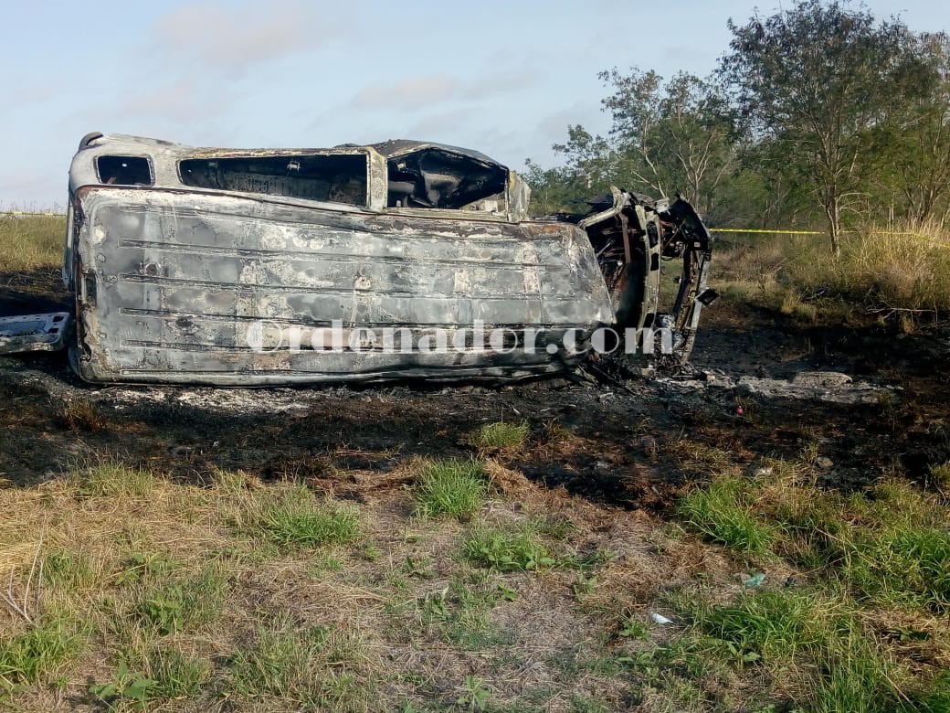 San Fernando, Tams., (15 de Febrero).- Calcinados entre los restos de la camioneta en que viajaban rumbo a Matamoros, quedaron los cuerpos de tres sujetos al registrarse la volcadura de la unidad motriz, percance en el que un cuarto tripulante salió con vida y fue hospitalizado de urgencia.