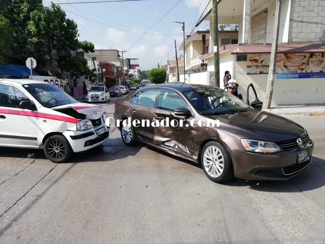 Tampico,Tamps. (17 Junio 2019)La falta de precaución al conducir por parte de una mujer que no atendió una señal fija de alto, ocasionó un aparatoso accidente vial, al ser impactada su unidad de reciente modelo por un carro de ruta.