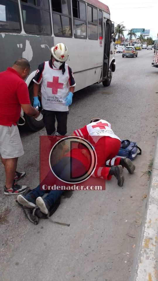 Tampico,Tamps. (9 Noviembre 2021)De manera accidental una mujer se cayó de un autobús del servicio público de transporte, resultando con lesiones diversas que ameritaron su traslado de urgencia a un hospital de la localidad.