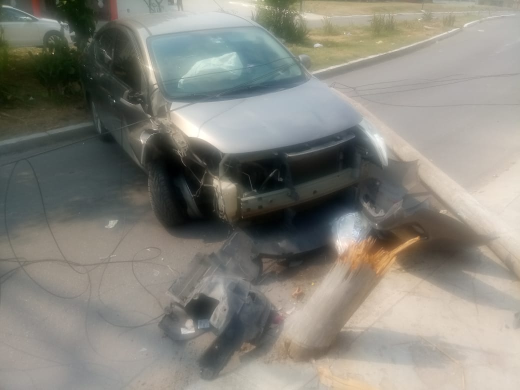 El exceso de velocidad y la falta de pericia al conducir ocasionaron que perdiera el control de la unidad, terminando por proyectarse contra el poste de madera que fue derribado, quedando el carro destrozado de la parte frontal.