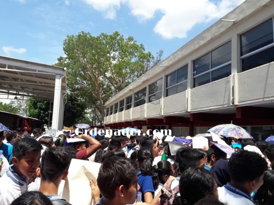 Nueve horas bajo el sol alumnos del Cetis 22, esperando beca