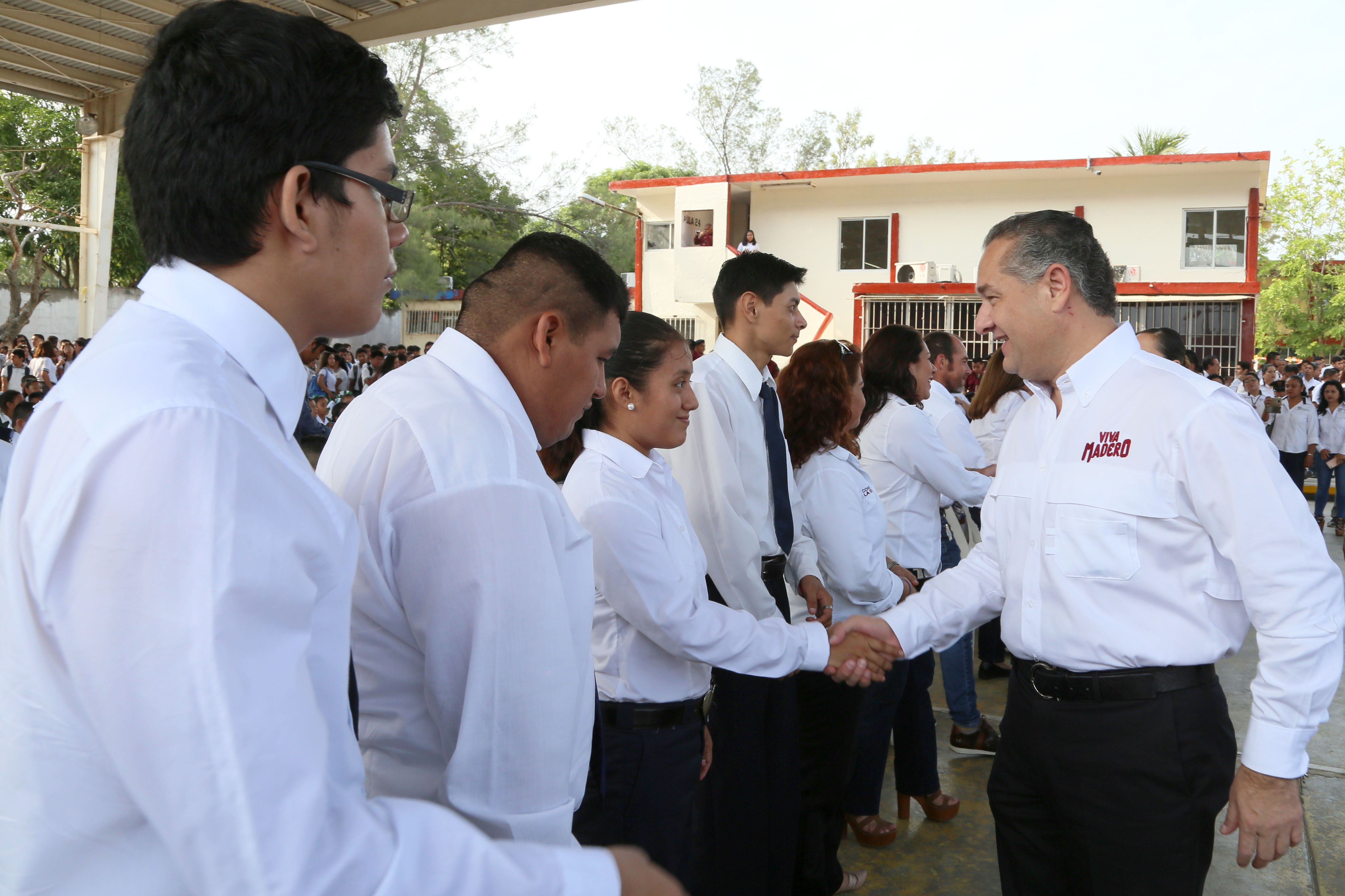 Cd.Madero,Tamps. (26 Agosto 2019 ) Un nuevo ciclo escolar dio inicio en Ciudad Madero y el alcalde Adrián Oseguera Kernion junto a su esposa la Sra. Ana Cristina Organista de Oseguera, refrendaron su compromiso por impulsar el desarrollo del sector educativo con los más de 48 mil estudiantes de la urbe petrolera que regresan a clases, a quienes invitó a destacar en esta nueva etapa de formación académica.
