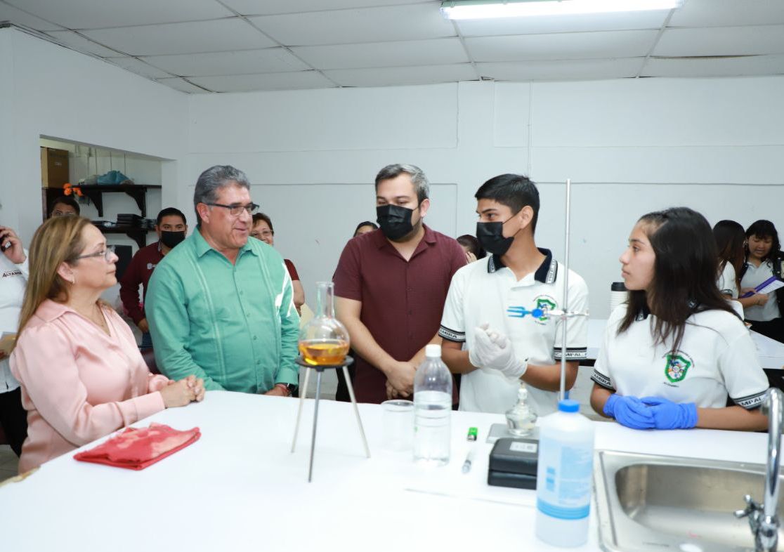 Altamira, Tamaulipas.- (27 Marzo 2023)Durante su visita a la Escuela Preparatoria Técnica Municipal de Altamira, el presidente de esta ciudad y puerto, el Mtro. Armando Martínez Manríquez destacó que habrán de respaldar a esta institución con la instalación de nuevos aires acondicionados en las aulas, una techumbre en el área común, así como diversos instrumentos para complementar el laboratorio de la misma.