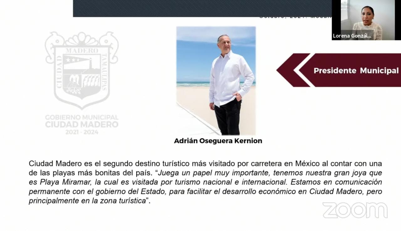 Cd. Madero, Tamps. (21 Octubre 2021)Por ser catalogada playa Miramar, como la única en contar con la certificación más alta, nivel III de Uso Recreativo en el Golfo de México, el Gobierno de Ciudad Madero, a través de la Dirección de Turismo, participó de manera virtual en el 2o Encuentro de Playas Sustentables, llevado a cabo del 19 al 22 del presente mes.