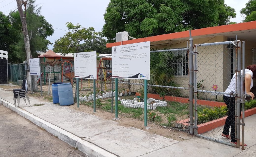 Cd. Madero,Tamps.-(4 Septiembre 2019)- Los alumnos del Jardín de Niños "Bertha del Avellano", ubicados en la colonia del maestro de Ciudad Madero, requieren la construcción de una barda perimetral para mayor seguridad de los menores.
