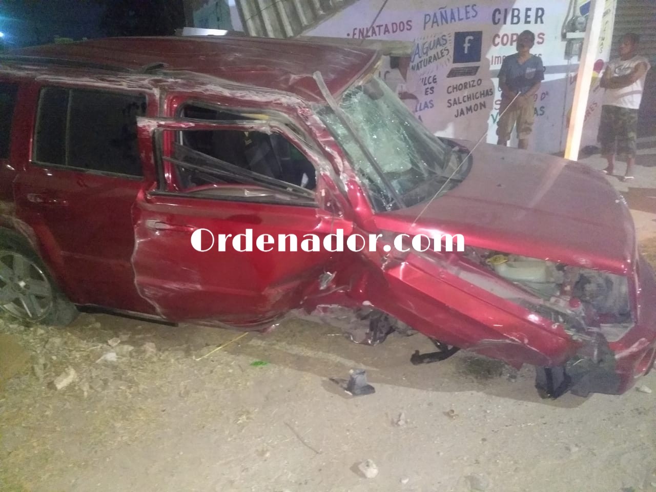 La unidad colisionada es una camioneta JEEP Patriot color guinda, misma que era guiada en dirección sur a norte por la Sexta Avenida con evidente exceso de velocidad.