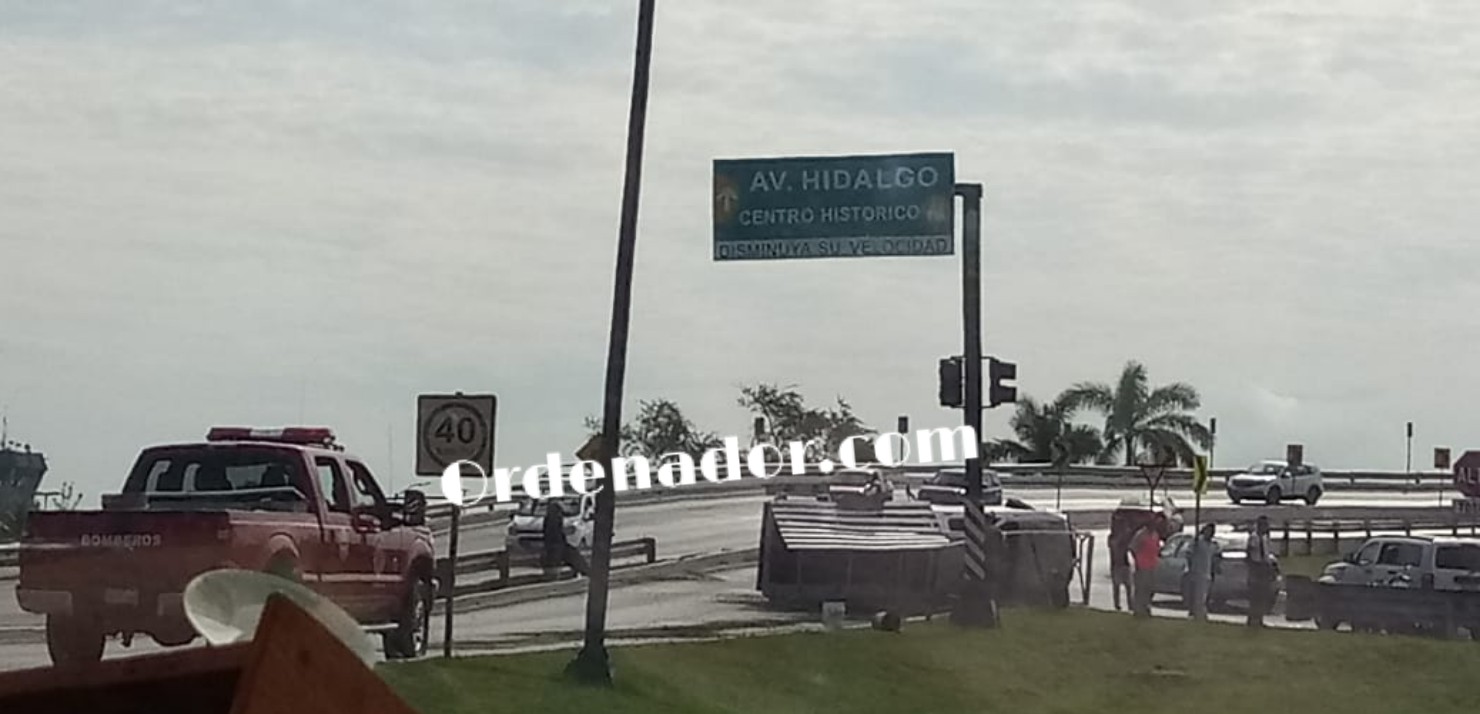 Los hechos se registraron en el paso a desnivel del aeropuerto, cuando la unidad era conducida de norte a sur y su operador trataba de tomar la desviación hacia el puente, impactándose contra un señalamiento de alto para terminar el vehículo volcado sobre su costado derecho.