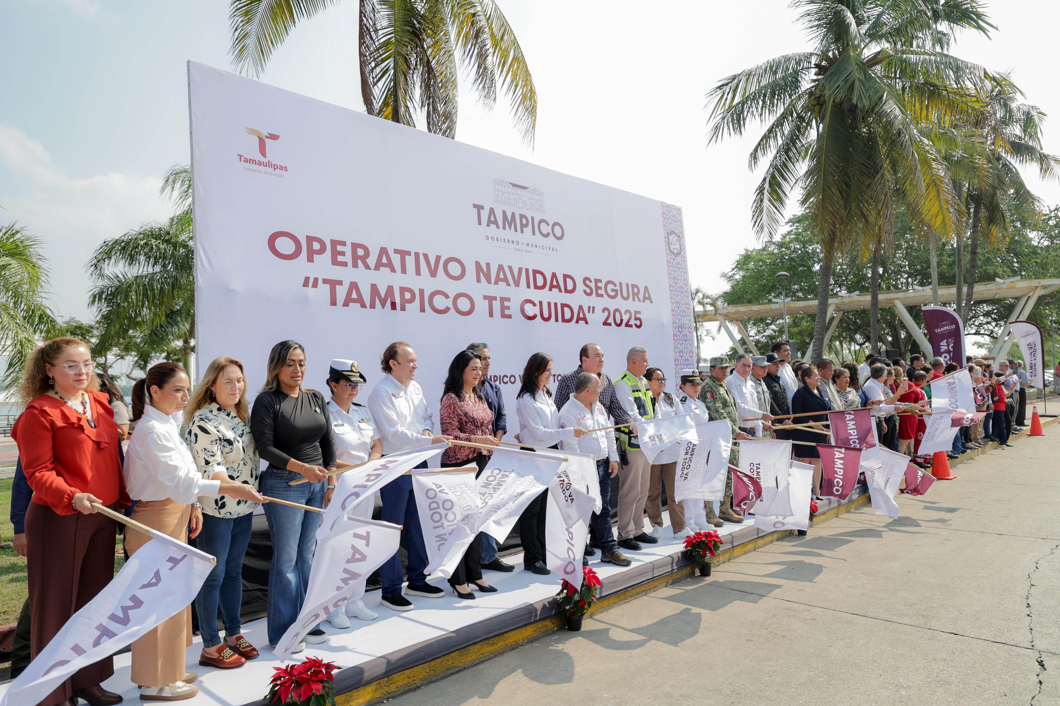 Tampico, Tamps. (4 Diciembre 2025)Con la convicción de que la seguridad es la base del desarrollo social, económico y turístico de Tampico, la presidenta municipal, Mónica Zacil Villarreal Anaya, encabezó este día el arranque del operativo “Navidad Segura, Tampico Te Cuida 2025”, una estrategia integral que contará con la participación de más de 31 dependencias e instituciones de los tres niveles de gobierno.