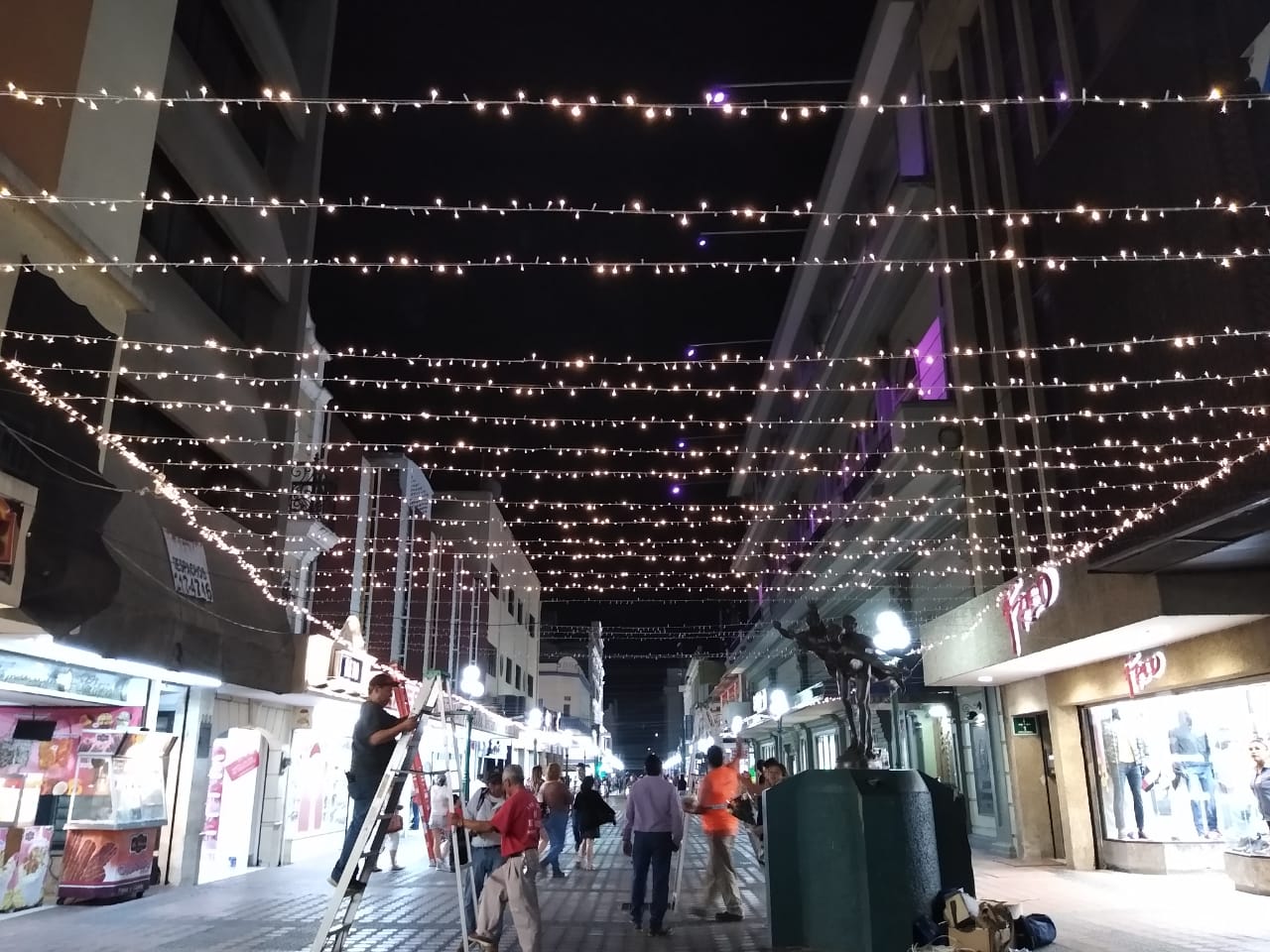 Tampico, Tamps.-. (5 Diciembre 2019 ) Será a más tardar mañana viernes 6 de diciembre cuando quede lista la instalación de guías de luces en las dos cuadras que abarca la calle peatonal Salvador Díaz Mirón desde Olmos hasta Aduana para convertirla en un nuevo atractivo turístico durante esta temporada vacacional decembrina.