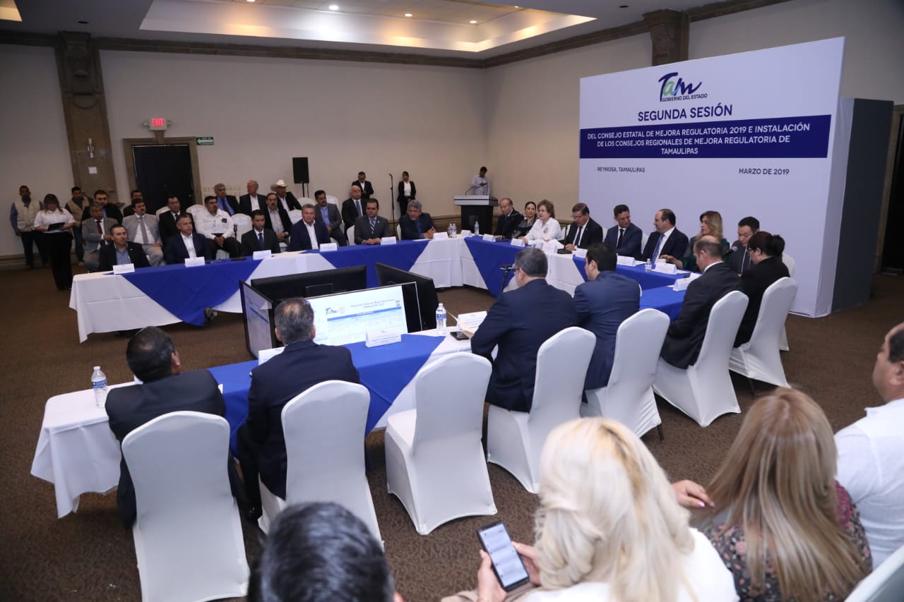Durante la sesión se expuso que como resultado del trabajo coordinado en materia de mejora regulatoria, Tamaulipas se ubica en los primeros lugares a nivel nacional, sin embargo se planteó el compromiso de continuar fortaleciendo las políticas públicas que maximicen el beneficio social y reduzcan los costos en la gestión de trámites y servicios.