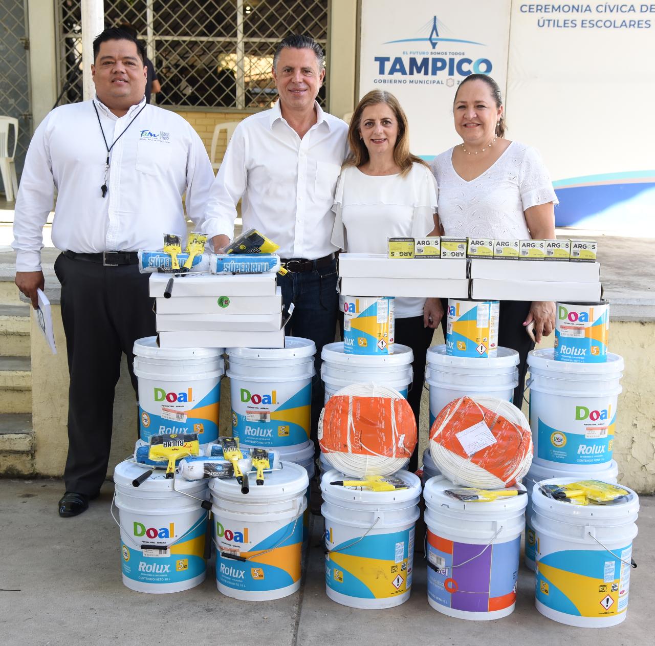 La entrega de apoyos consistió en paquetes de útiles escolares, luminarias, pintura, brochas y artículos de limpieza para mejorar el entorno escolar, con valor superior a los 38 mil pesos, con los que se mejorará la imagen de las escuelas beneficiadas y se crearán entornos escolares más adecuados para la comunidad estudiantil.