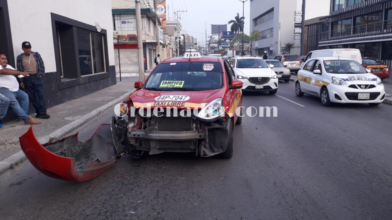 Tampico, Tamps.(5 Febrero 2019) Fuerte choque por alcance se registró la mañana de este martes en donde participaron dos vehículos compactos del transporte público teniendo como resultado fuertes pérdidas materiales y por fortuna los ocupantes resultaron ilesos.