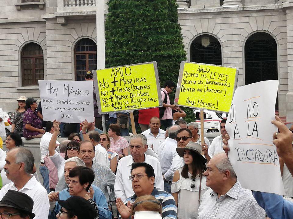 Los manifestantes mostraron pancartas en las que externaron el repudio a las políticas públicas del jefe del ejecutivo federal, a quien llamaron con todo tipo de improperios.