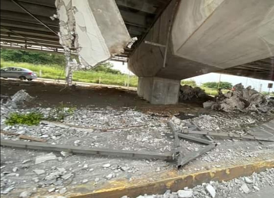 Indicó que en estas condiciones el puente es de peligro para la poblacion, ya que se tienen hasta fierros colgando, los cuales casi llegan a los capacetes de los carros.