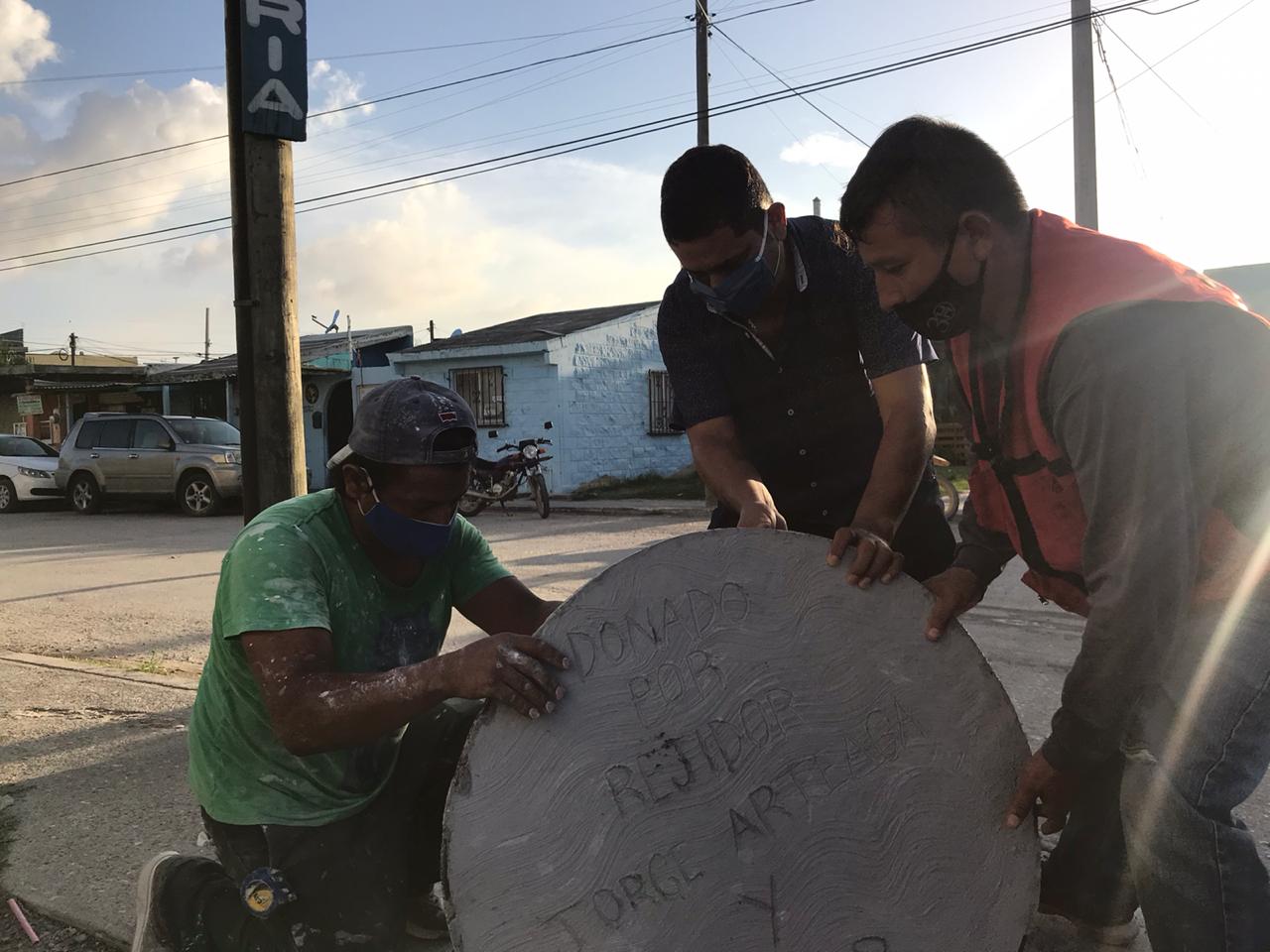 CdMadero, Tamps. (13 Agosto 2020) Al registrarse el robo de distintas tapas de los registros de diversos servicios en las colonias Miramapolis y Tercer Milenio, en la zona norte de Madero, regidor manda construirlas para resolver el problema que esto genera.