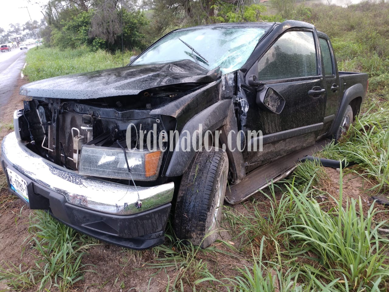Se trata de una camioneta GMC Pick Up doble cabina en color negro, misma que era conducida por Ángel Alejandro “C”, quien por fortuna resultó sin lesiones pese a lo aparatoso del percance.