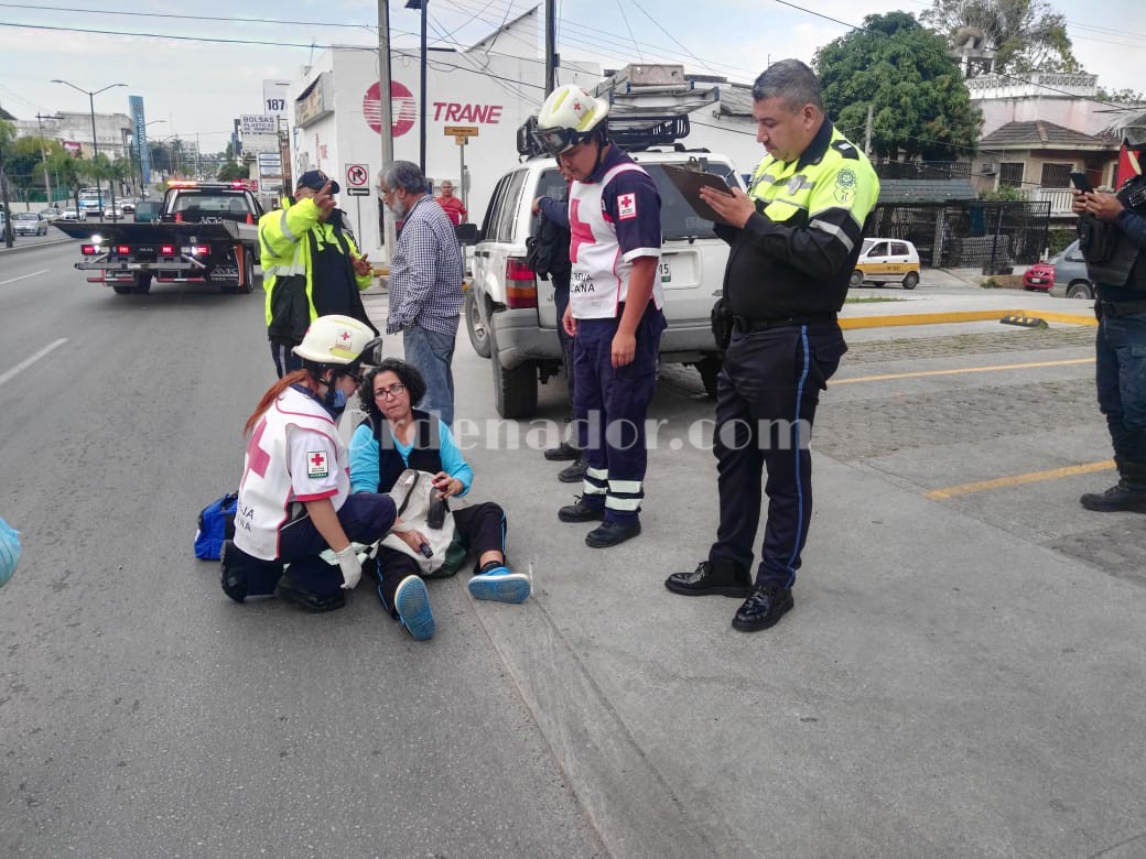 La mujer que se encontraba parada sobre la banqueta fue proyectada contra el pavimento a causa del golpe, siendo necesario que socorristas de la Cruz Roja se movilizaran para brindarle los primeros auxilios, mientras los agentes de tránsito tomaban conocimiento de los hechos.