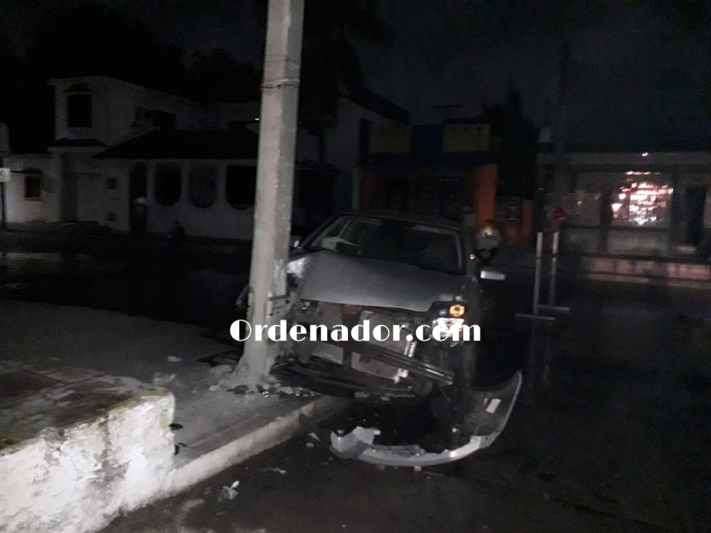 Se impacta en vehículo contra poste, intentó librar anuncio