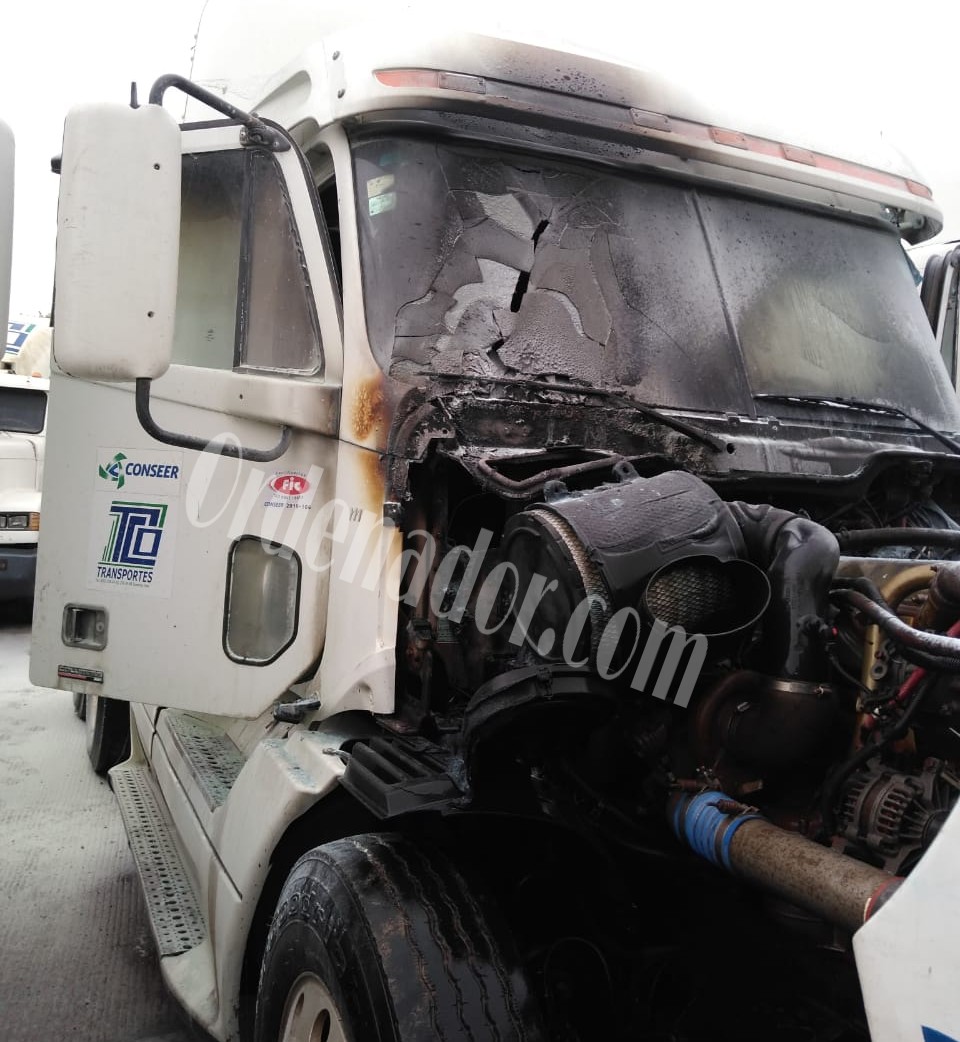 Después de unos minutos lograron sofocar las llamas, sin embargo la unidad de la marca Freightliner sufrió serios daños en la cabina a causa de las flamas que se estaban levantando en su interior.
