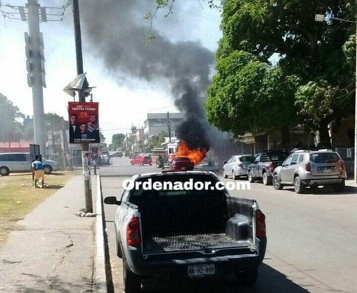 Intensa movilización generó el impresionante incendio de un automóvil en Ciudad Madero, al presentarse una falla eléctrica en el área del motor, incidente en el que el conductor resultó con quemaduras en un brazo y la pierna izquierdo.