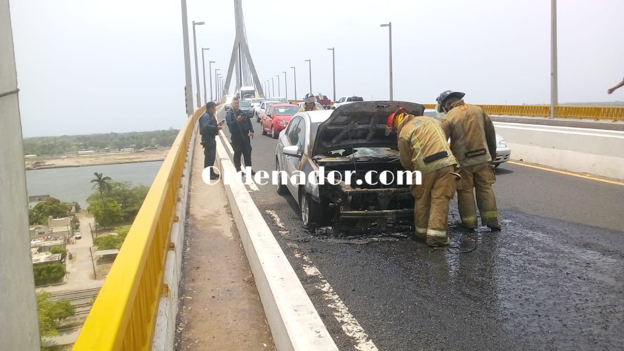Poco antes de las dos de la tarde de este sábado, la Central de Emergencias C-4 reportó que un vehículo Nissan Sentra en color gris se estaba incendiando sobre el puente, acudiendo al sitio dos unidades del Cuerpo de Bomberos así como elementos de la Policía Estatal Acreditable.