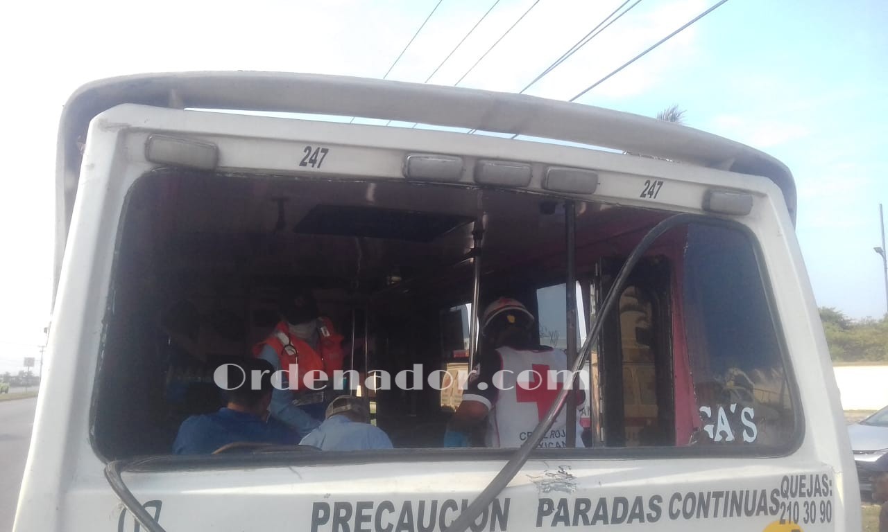 Todo derivó de la falta de pericia del conductor del camión concretero, pero por fortuna el golpe fue mínimo, sin embargo los pasajeros resintieron el impacto al resultar seis personas lesionadas siendo atendidas en el lugar del accidente por los paramédicos de la Cruz Roja.