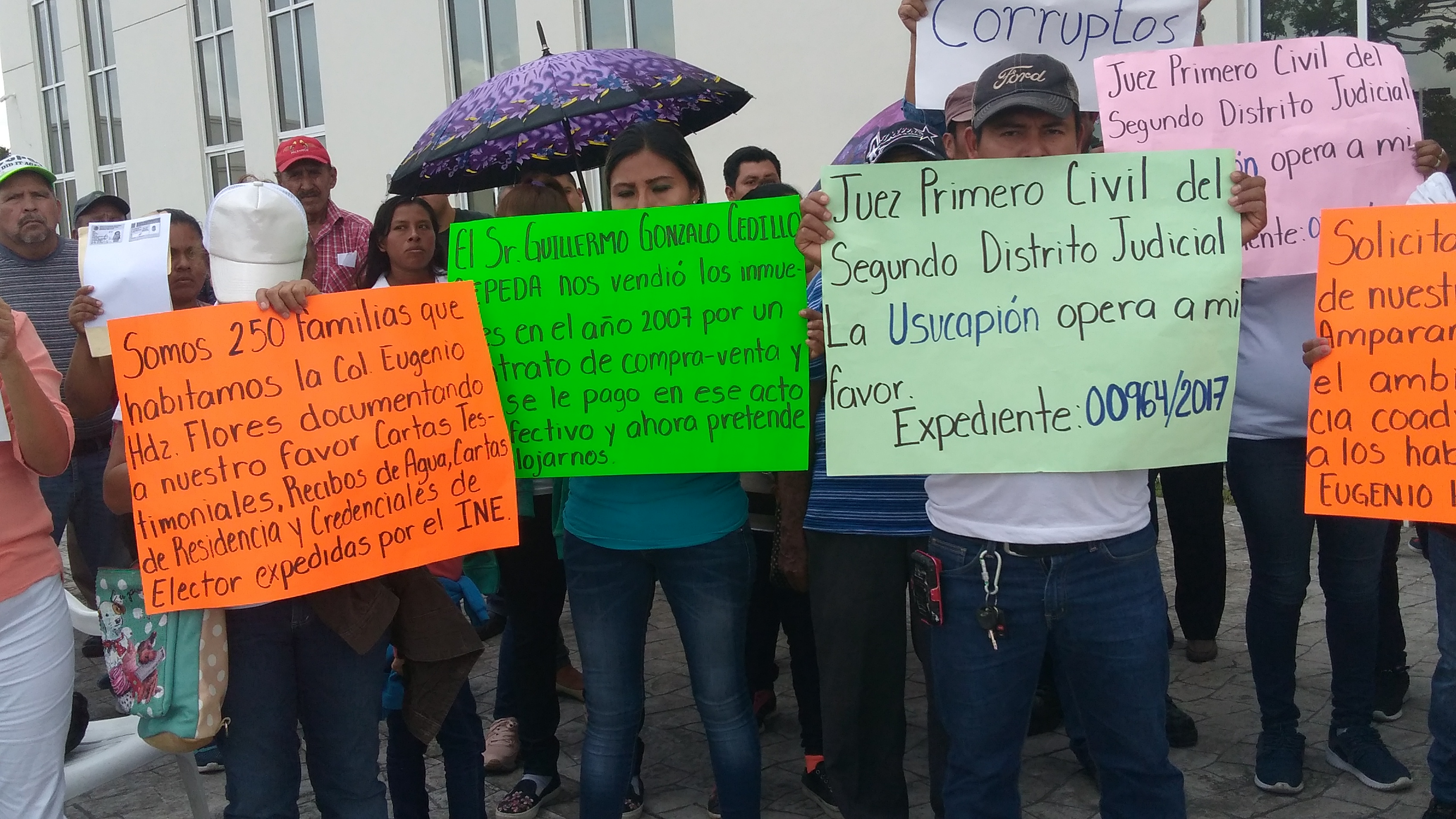 Omar Israel Cedillo Reyes junto con un grupo de personas se manifestaron esta mañana del lunes a las puertas de las instalaciones del poder judicial del estado, donde demandaron la intervención de las autoridades federales ya que los representantes de la justicia en el sur del Estado han otorgado de manera irregular, el título de propiedad y dominio pleno de un aproximado a 12 hectáreas de terreno en disputa, a pesar y que la parte afectada cuenta con un título de posesión desde el 2006.