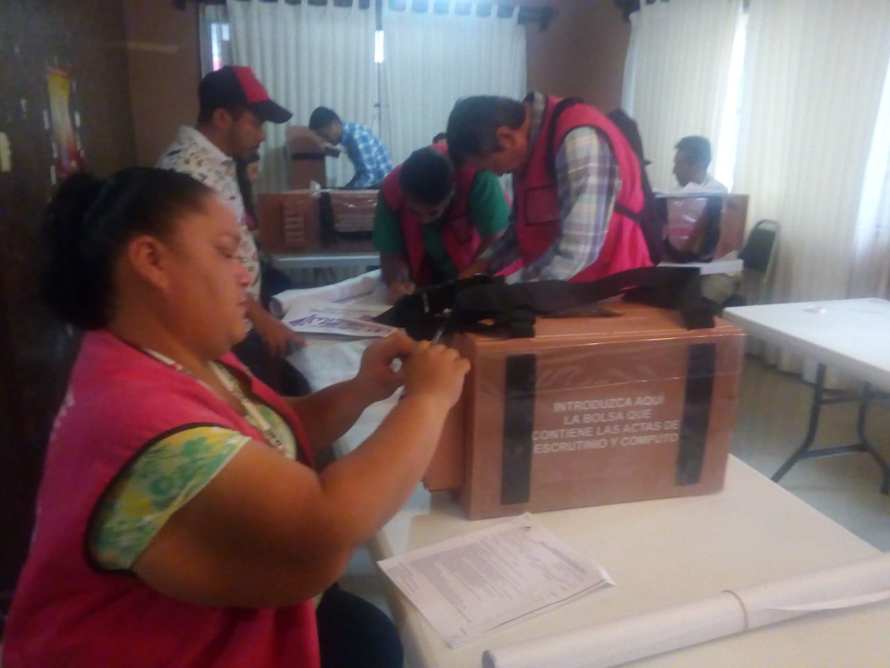 "Regularmente todos se han entregado a excepción de dos paquetes a lo mejor que han regresado como los presidentes de mesas directivas de casilla, a veces trabajan, a veces pasa un incidente que no pueden recibirlo por "X"razón lo vuelven a reagendar... sí se nos avisa para que paqueye vuelva a bodega electoral y al día siguiente se reagenda para la entrega"
