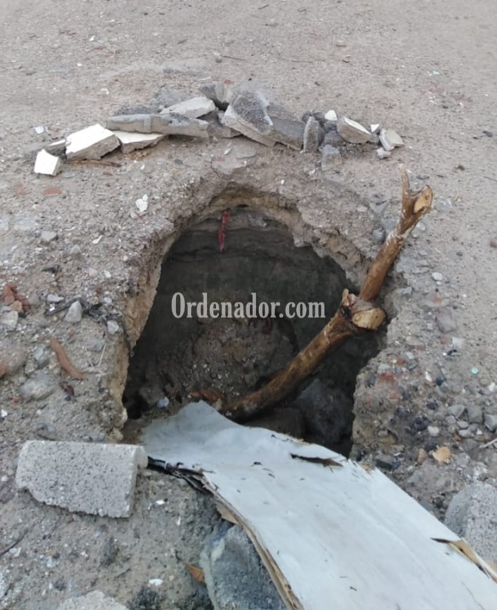 Esta falla en el sistema de la red de drenaje se presentó a la altura de la esquina que forman las calles Cedro y Fresno del referido sector, lugar donde se puede apreciar el hoyanco que se formó y que carece de la debida señalización.